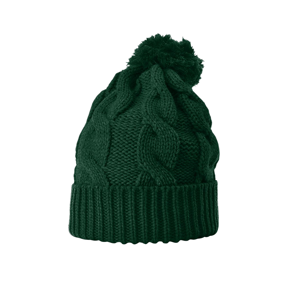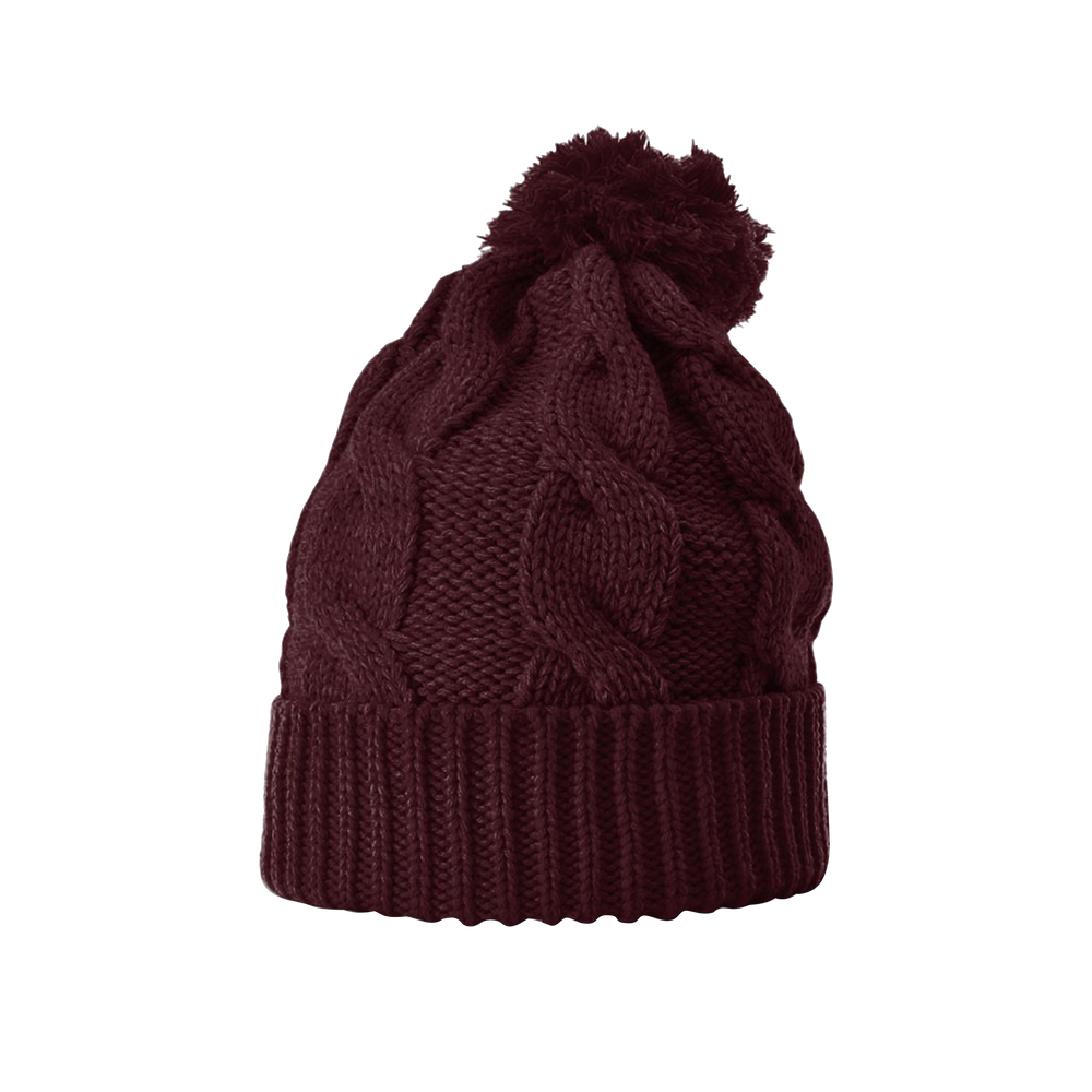 The thick gauge cable knit and over-sized pom give our Cable Knit Beanie some on-trend fashion features to complement it's cold-weather functionality. 100% acrylic is lightweight and warm with a wool-like feel.