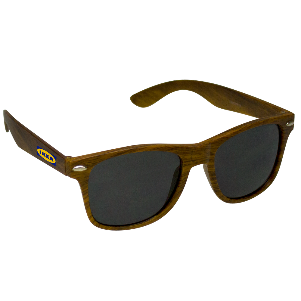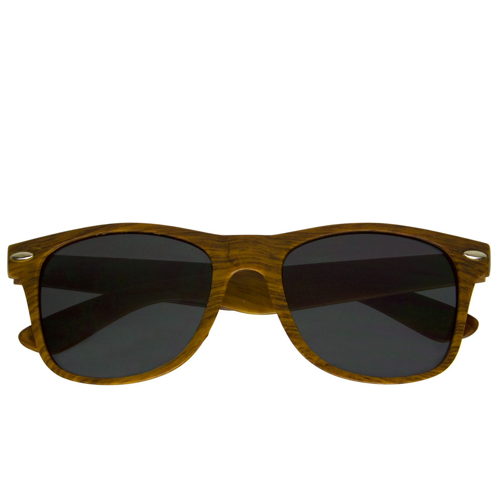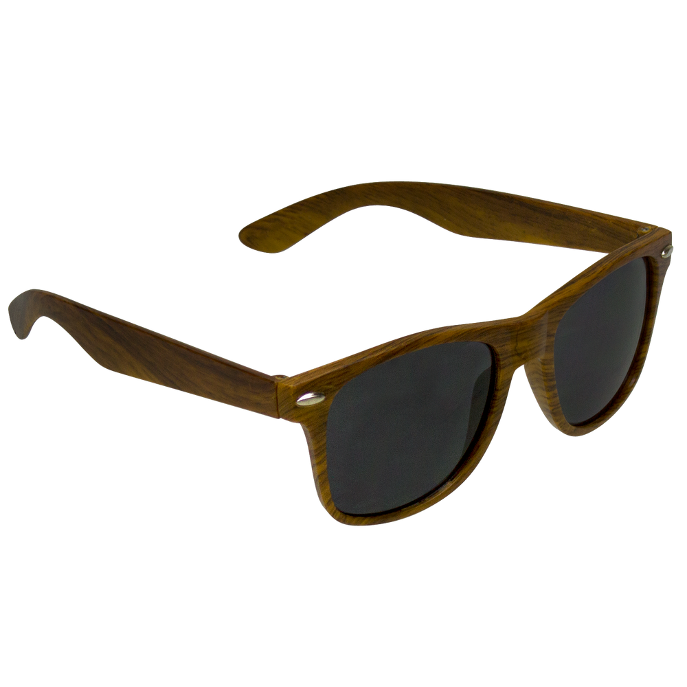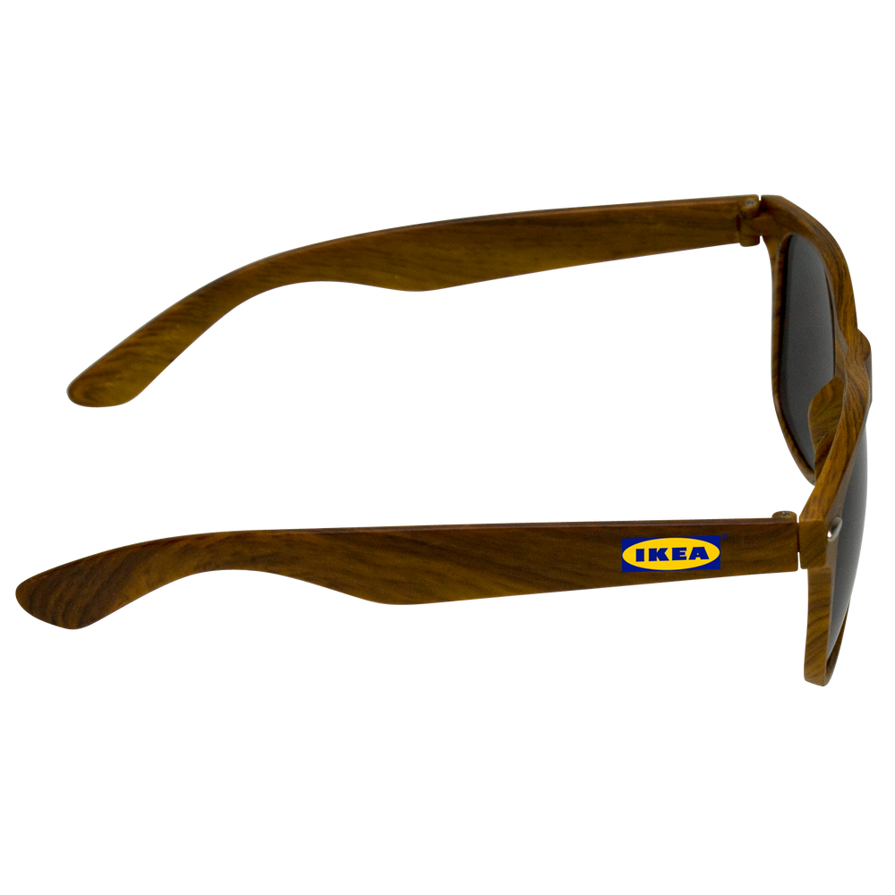 Subtle wood design adds a stylish twist along with a quirky academic, old-world feel to these shades, which are embellished with rivets and a quality bespoke design. Their shape is square, but don’t let that fool you – these shades know how to party like you wouldn’t believe! Straight from the board room to the dance club, from dawn ‘till dusk and back again, these custom sunglasses go anywhere and have fun right along with you. Customize them with our standard large imprint area of 2” x .25” to share a message, an image, or a very small manifesto.