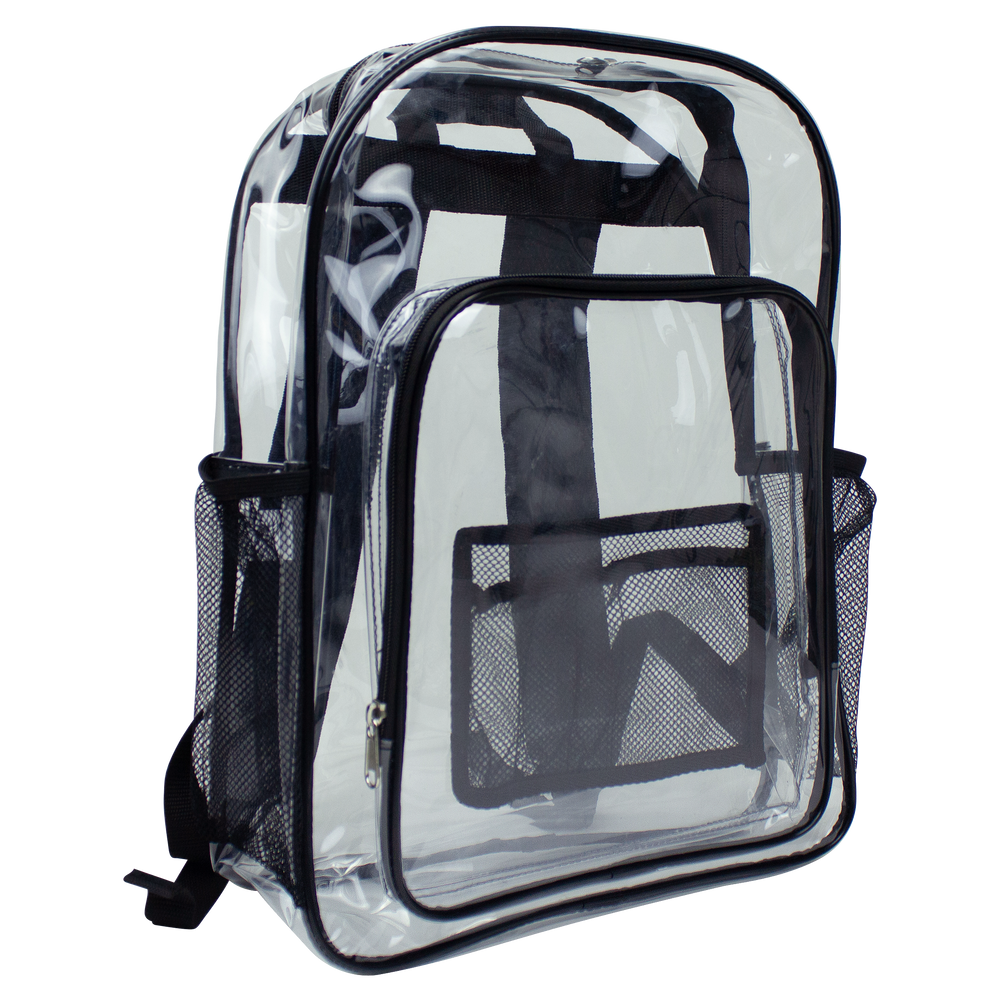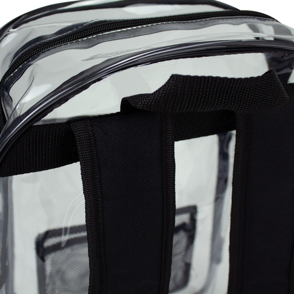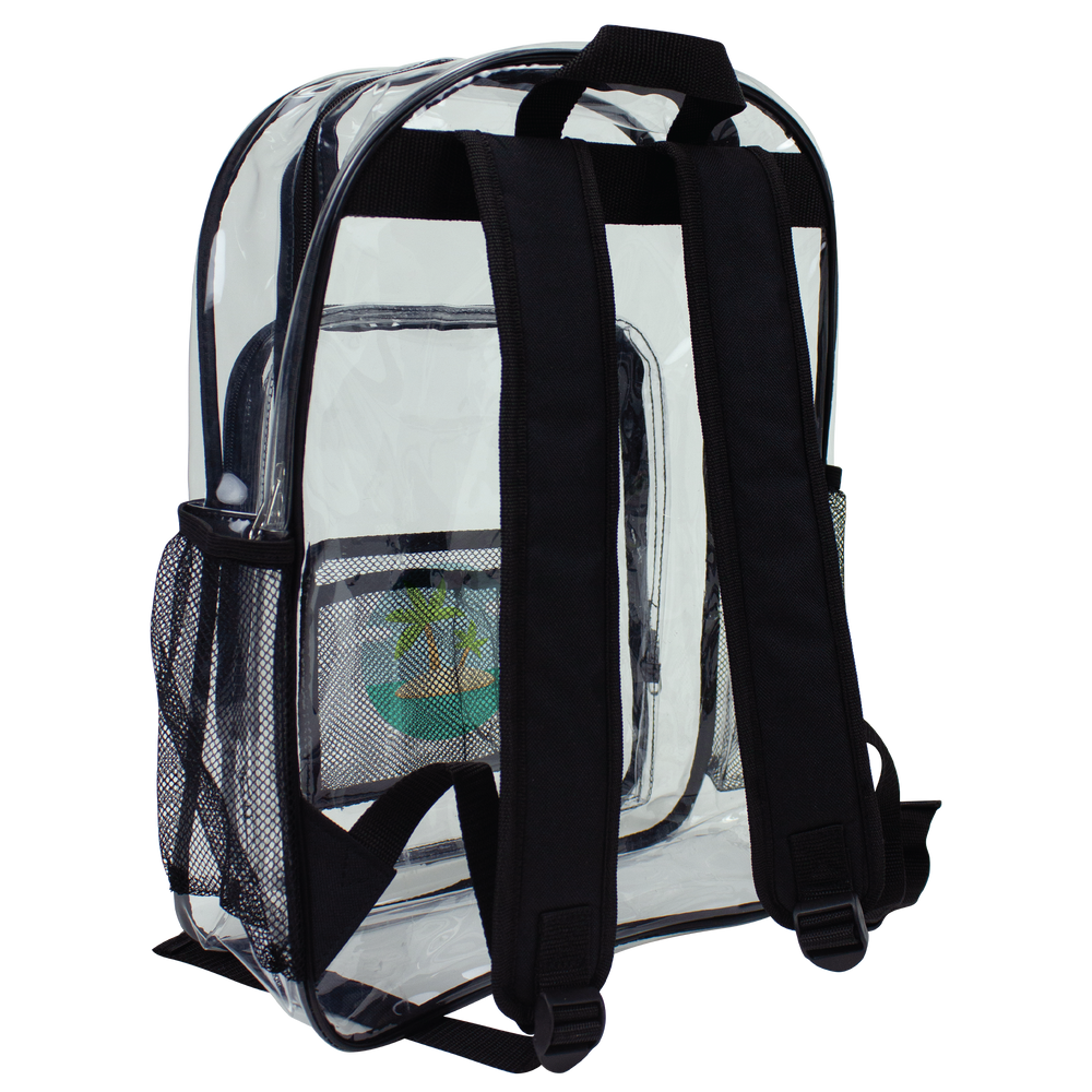 Functionality meets neo style with this comfortable, clear backpack that keeps your
