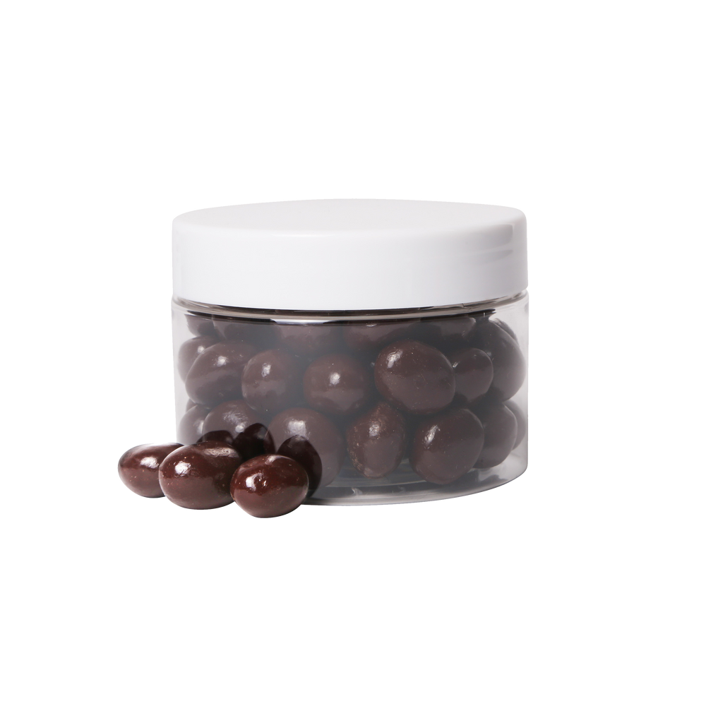 Calling all coffee-lovers! Enjoy a jar (3 oz) of freshly-roasted whole arabica coffee beans gently coated in fine dark chocolate.