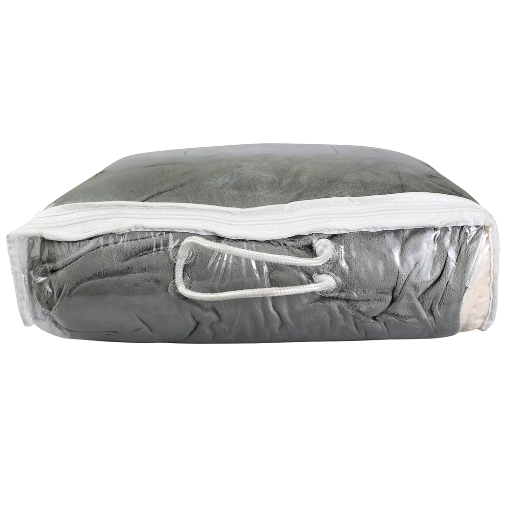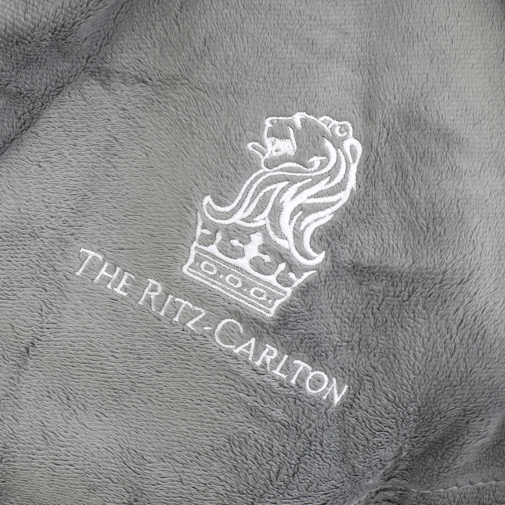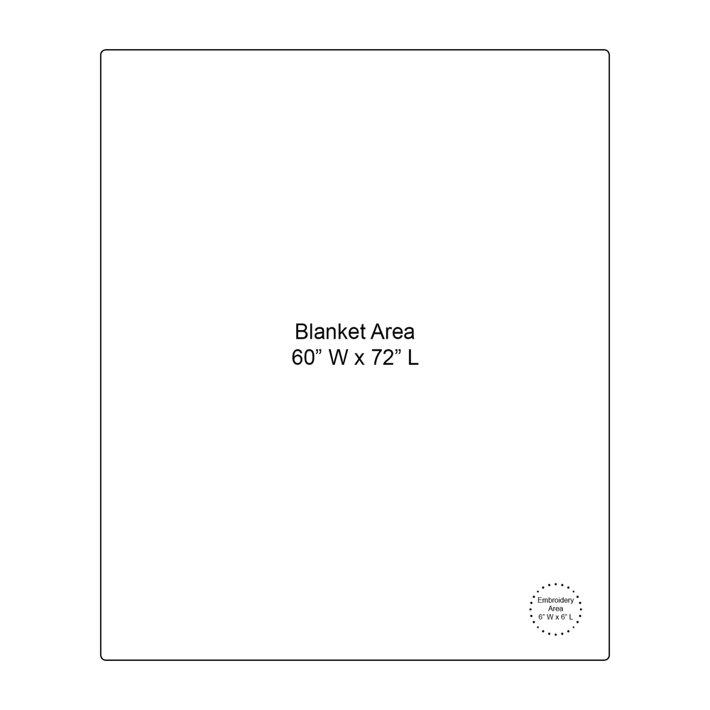 Measuring at 60" w x 72" l, the Denali Deluxe offers an additional 10 square feet of luxurious fabric. The micro mink on top is soft and plush while the sherpa underneath adds weight and warmth. The Denali features a small, zipped compartment that hides the back of the embroidery for a sharp, clean look, and comes packaged in a vinyl carrying case.