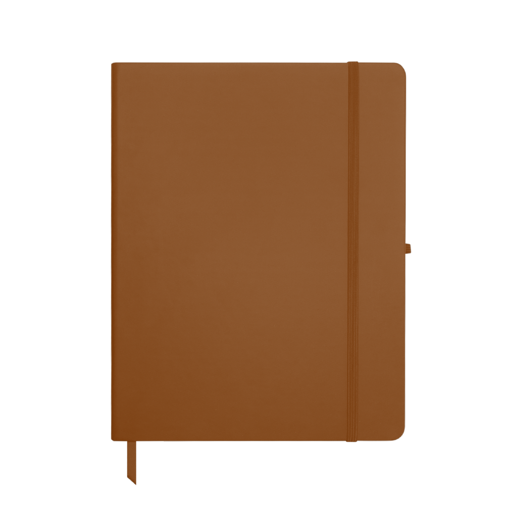 Our soft faux leather journals include an elastic band to keep it closed, a bookmark, and 80 pages of ruled paper.