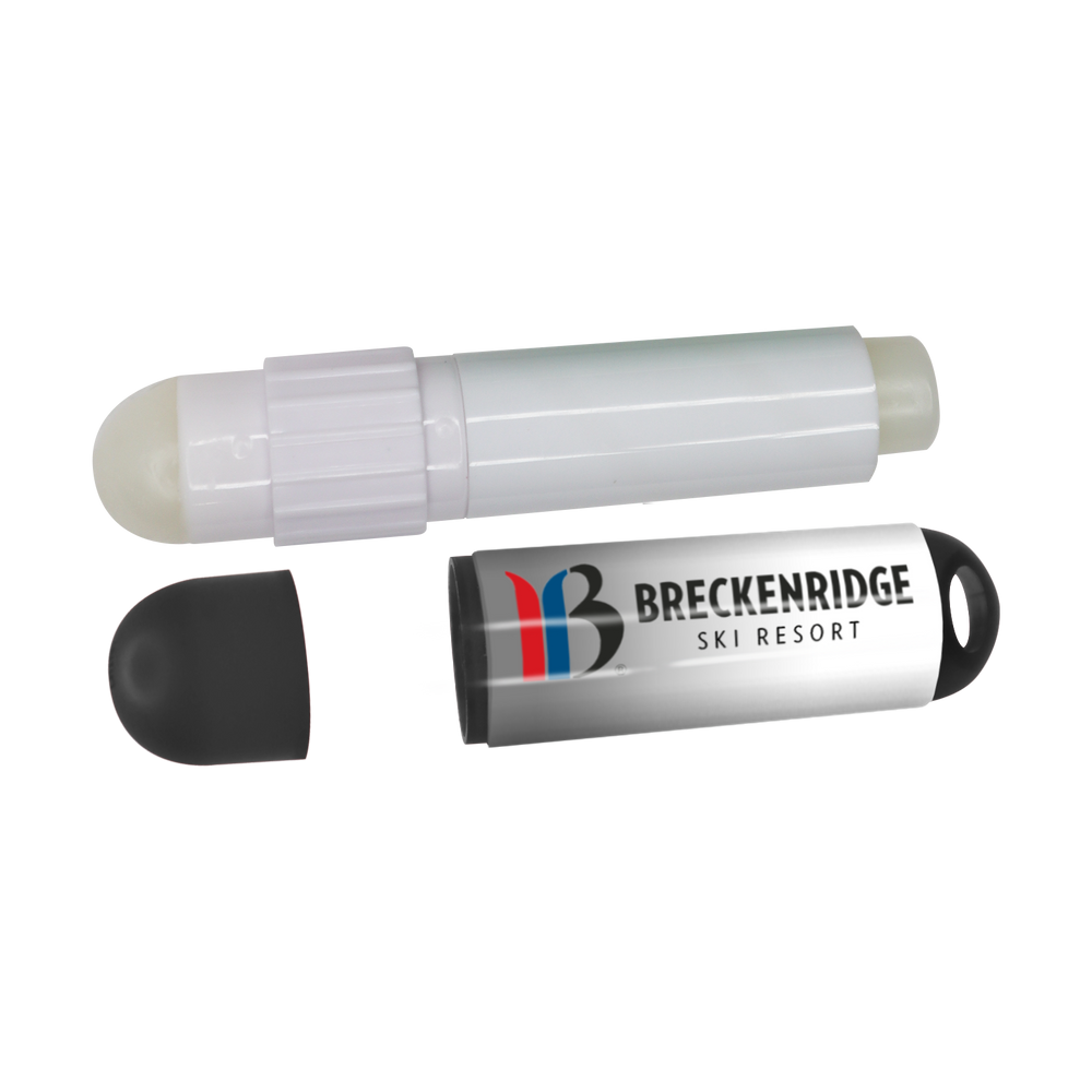 Accessible and practical, the Lip Balm and Sunscreen Duo is the perfect giveaway item to boost your brand. This exceptionally handy duo features a SPF30 sunscreen stick on one end and a lip balm infused with SPF15 on the other. The white barrel of the stick may be customized to display a 4-color process imprint to showcase your brand’s unique name and logo. Ready to travel with you, this 3 ½” duo stick sports a handy loop over the cap of the lip balm for easy connection to your key ring. This duo stick offers one of four different trim color options to accent your barrel imprint. Alternatively, you may customize this duo more specifically to your brand style by choosing one of five translucent colors for the cap at each end of the stick. This duo stick is available in bulk orders of 250 and 500. Useful year-round and with a creative configuration, the Lip Balm and Sunscreen Duo is a clever way to increase your brand exposure.