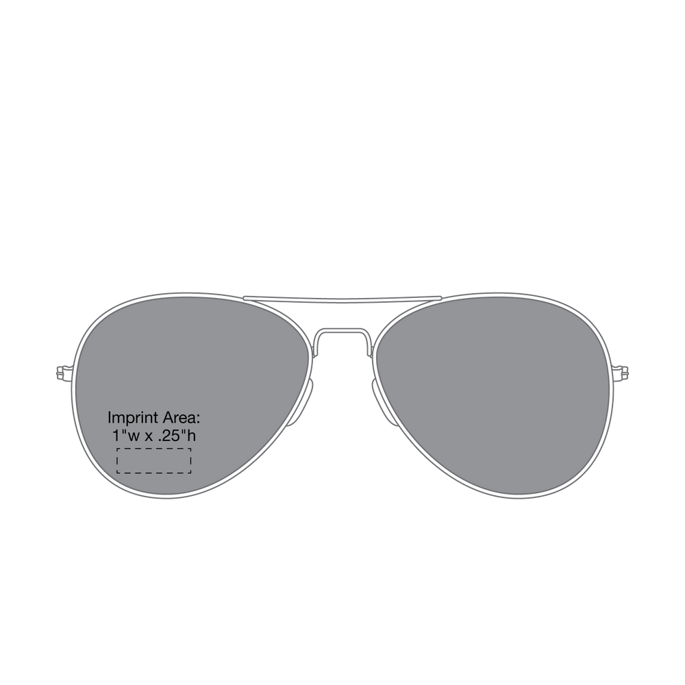 Vintage aviator style in a range of updated colors! The durable round silver metal frames and mirrored lenses of our Miami sunglasses compliment every face shape. Great for both men and women, you choose the lens color that suits you in classic or snazzy tints, all with a high-gloss mirrored finish and guaranteed UV 400 sun protection so you can keep going and going all day long. Imprint area of 1” x .25” right on the lens gives you an unobtrusive way to make a statement with any logo or message. Cap off any look with these mirrored shades that project confidence and just a touch of attitude.