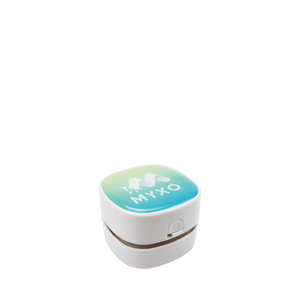 Don't let it's size fool you - our Mini Desktop Vacuum can tackle any mess! Measuring 3.1" W x 3.1" L x 2.4" H, this palm sized vacuum is the perfect custom desk accessory that can clean your desktop, keyboard, drawers, and more. Customize the epoxy dome on the top of the vacuum with a full color print for the perfect custom corporate gift.