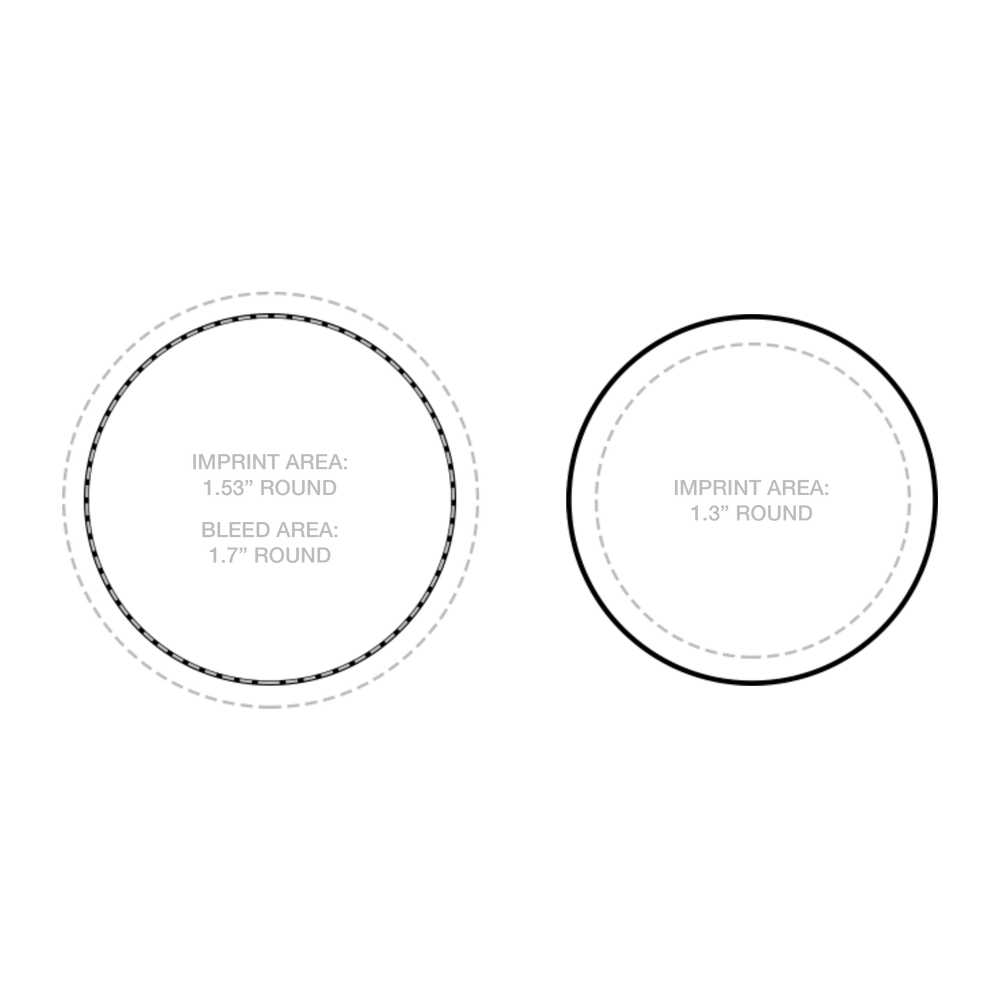 Imprint Area : 1.3" x 1.3" (1 or 2 color) and 1.53" x 1.53" (full color)