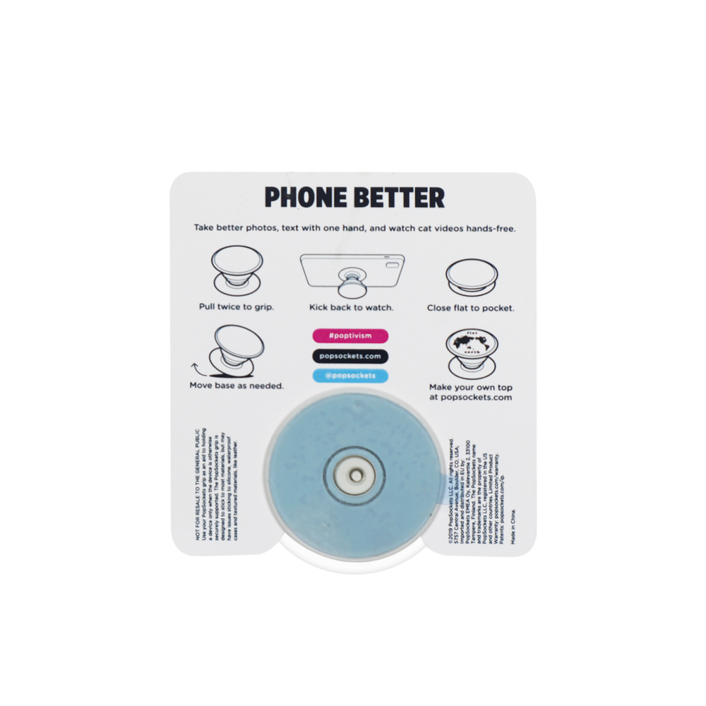 - Base may be readjusted by removing the PopSocket and wetting the adhesive base