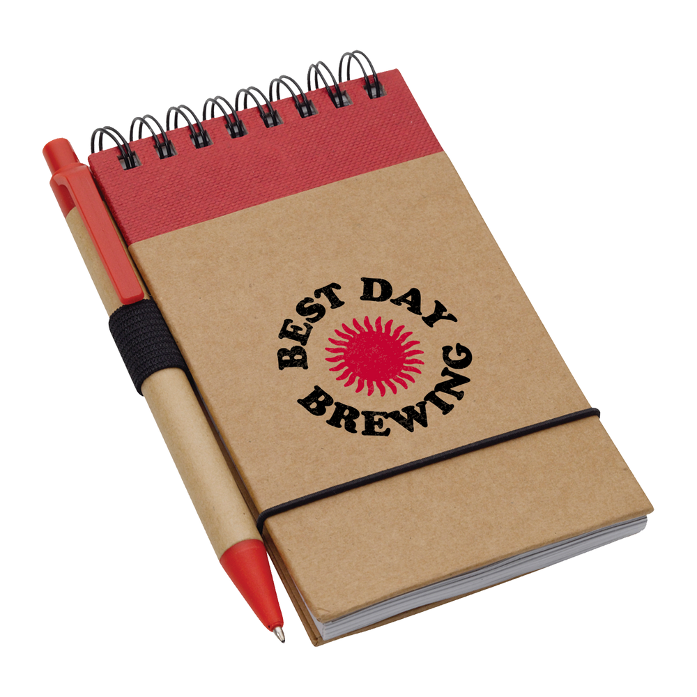 Our Recycled Mini Spiral Notebook with Pen features a recycled cover and includes a matching ballpoint pen with a recycled barrel. It also features a plastic band closure, an integrated pen loop, and 60 ruled sheets to record your important notes. These mini custom notebooks are an excellent addition to team gift boxes to prepare them for their next big meeting.