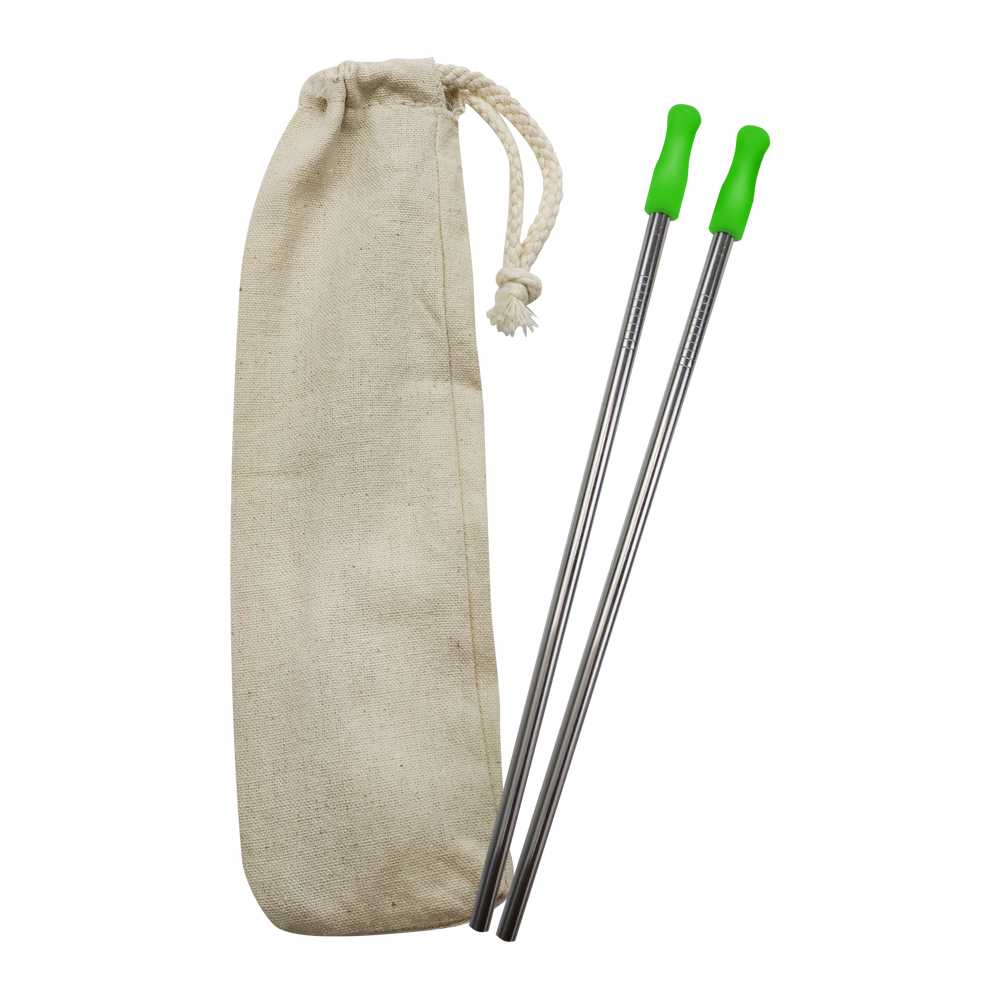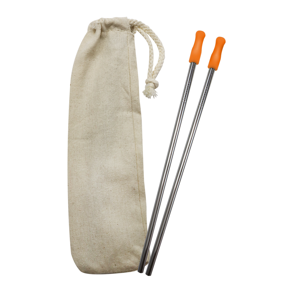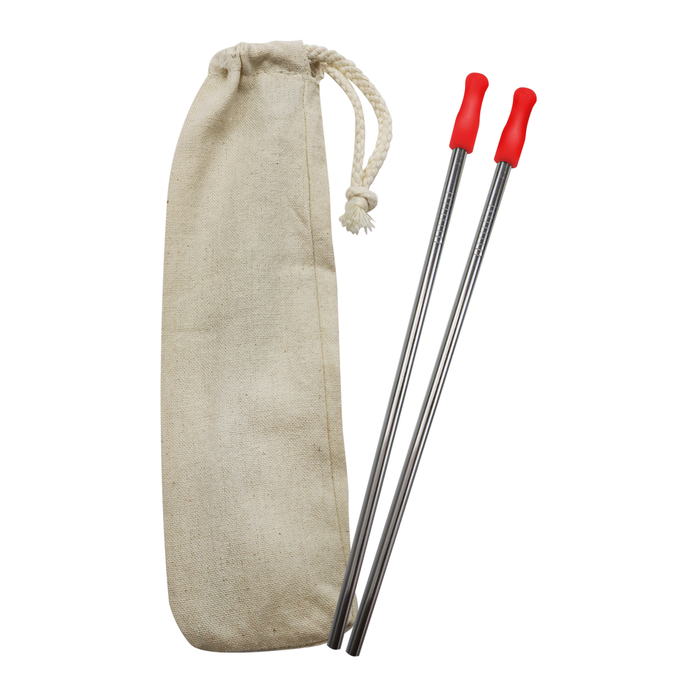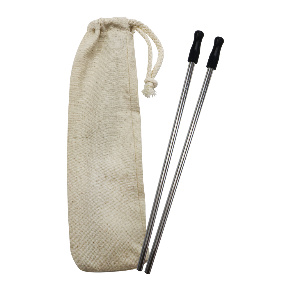 Always be prepared with our stainless straw kits! This straw option comes as a set of two so you always have one to spare. These reusable straws are environmentally friendly as they will help you to cut down on single-use plastic straws. The silicone tip comes in a variety of colors to match your company logo and ensures a comfortable drinking experience! Each kit comes with two straws, an 8 oz cotton carrying pouch and two wire cleaning brushes. Everything you need to be keep your straw clean on ready for use. It is recommended that this steel straw is washed by hand. With the customized stainless steel straw sporting your unique logo, you’ll reinforce both your brand recognition and your organization’s commitment to environmental conservation.