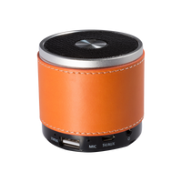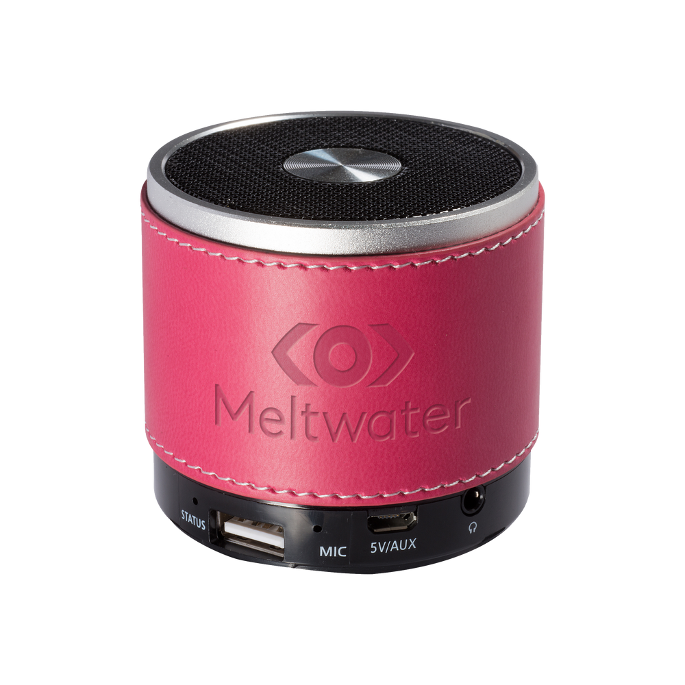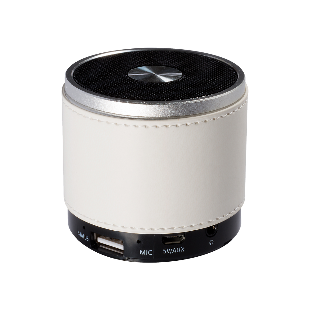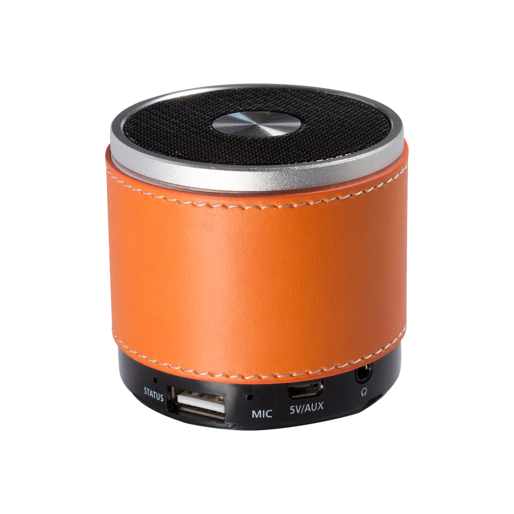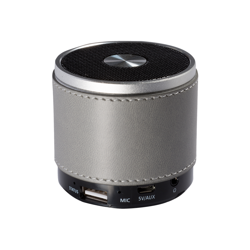 The Tuscany™ Faux Leather Wireless Speaker features is a palm-sized cylinder wireless speaker with soft-PU accent wrap body and no-slip bottom that you can pair with your smartphone to use hands-free microphone feature, and can also play MP3 files though a USB flash drive or TF card.