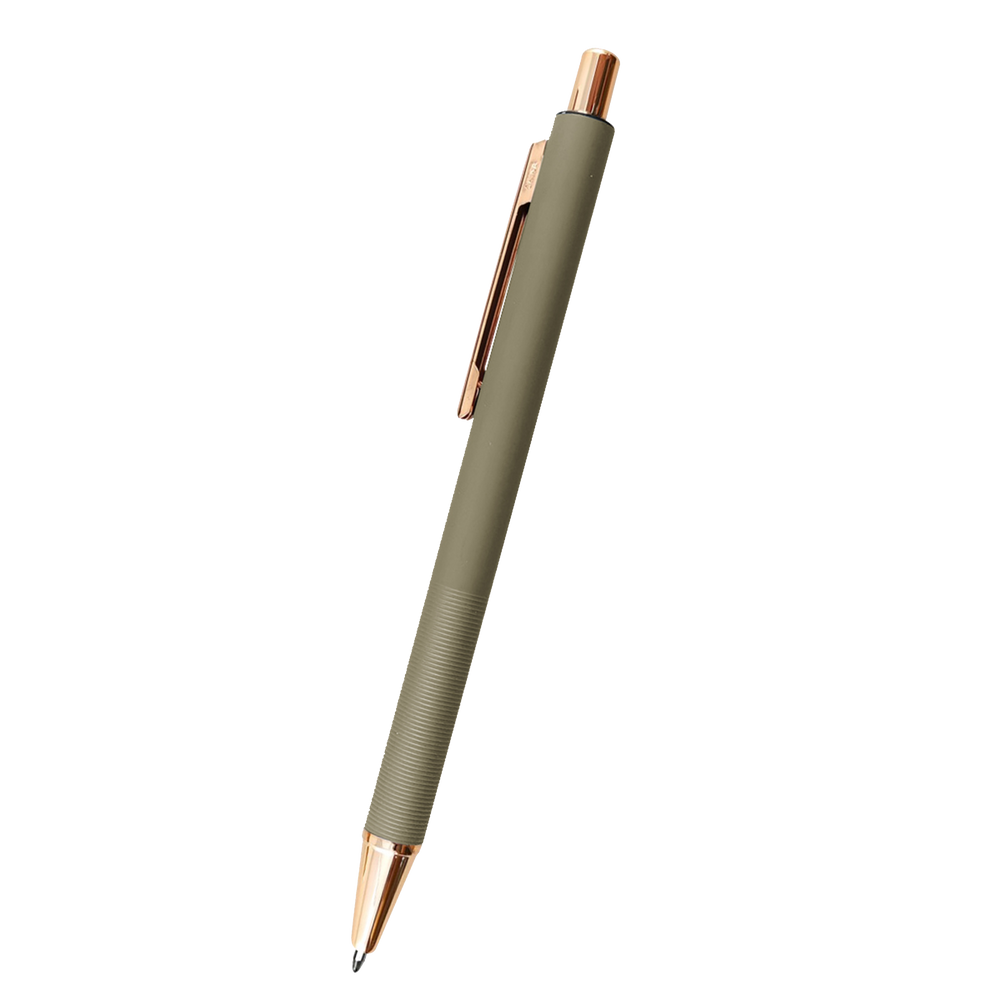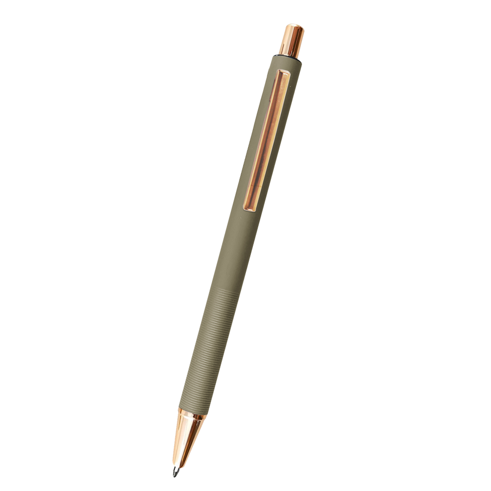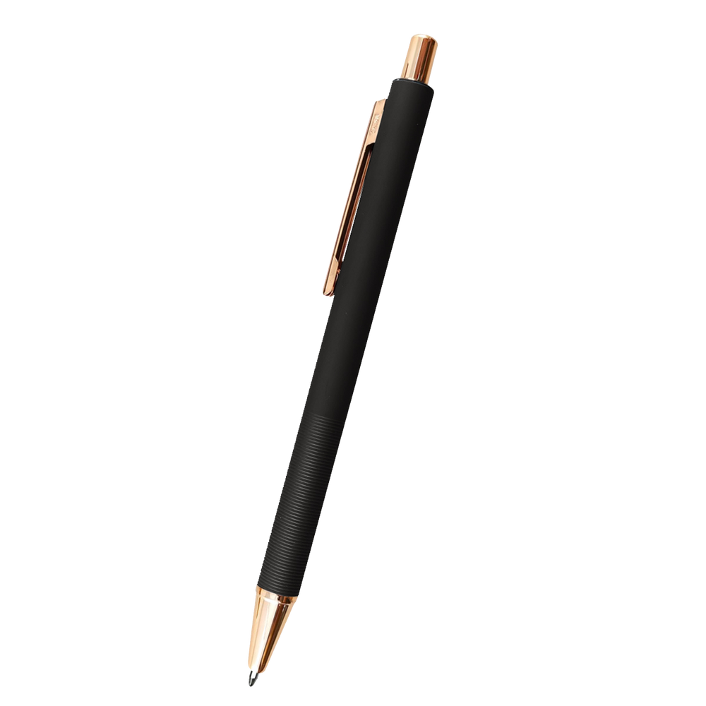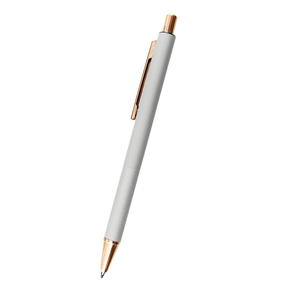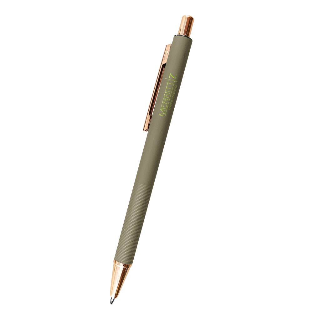 The Twain Pen features a trendy rose gold accent and textured grip. These high-quality custom pens are sure to be kept and used, increasing your long-term brand exposure.