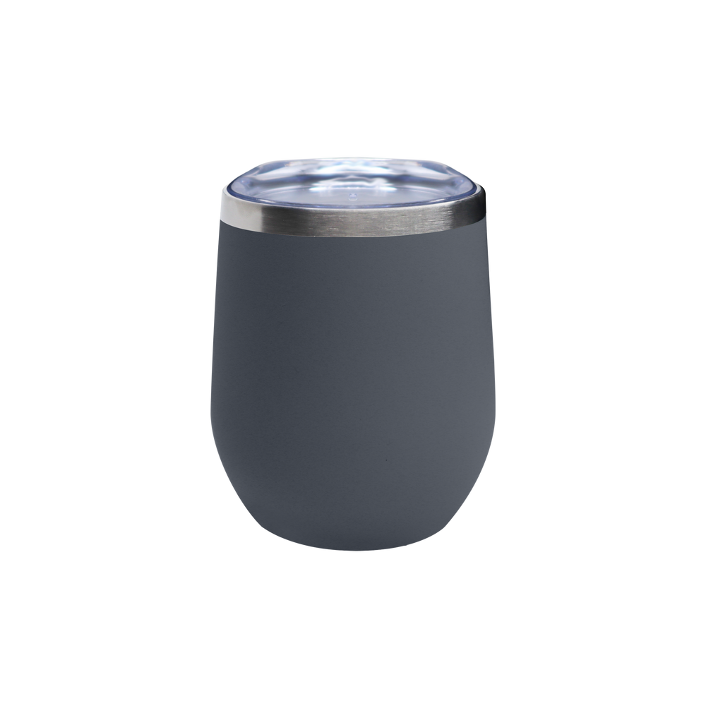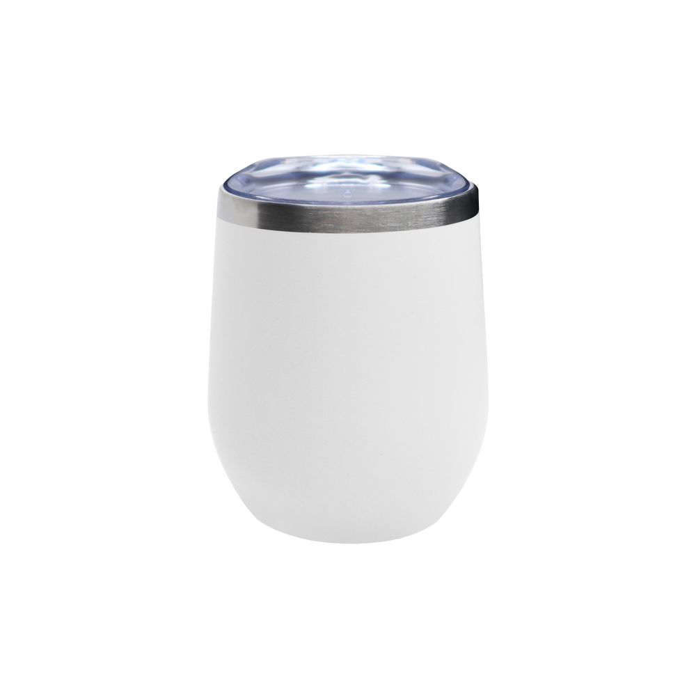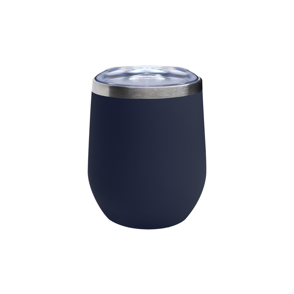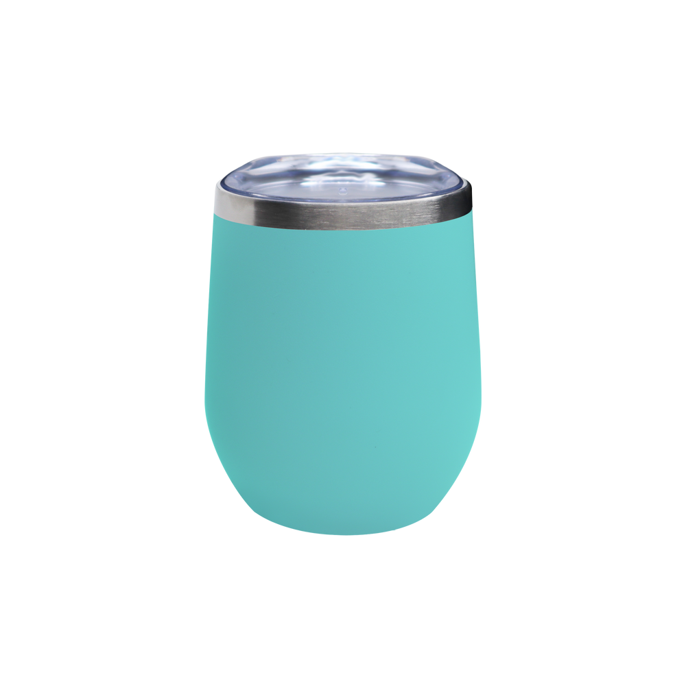 Flaunt your logo far and wide with the travel-ready Vacuum Insulated Stemless Wine Tumbler. Featuring a 18/8 stainless steel thermal interior with copper vacuum insulation and a stainless steel rim, this stemless wine tumbler is ideal for tailgating, outdoor events, evenings on the water, and more. The clear, push-on lid contains an open mouthpiece design and provides a tight seal to enhance temperature maintenance and prevent accidental spills. The stemless wine tumbler can be customized to feature your unique artwork or logo in a full color imprint measuring 1 ¾ x 3 ¼ on one side of its exterior. This custom wine tumbler comes in 14 different colors and features a powder coated finish for a more modern appearance. Available in cases with 24 tumblers per pack. Stylish and functional, the stemless wine tumbler is the perfect way to showcase your unique brand and increase your brand exposure.