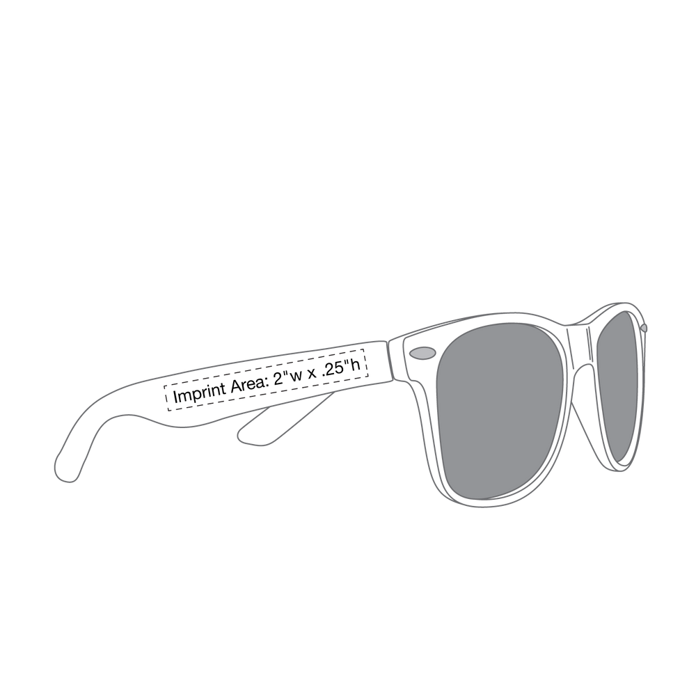 Mirrored lenses tell the world you’re too cool to be up to any good! This classic design with mirrored glam lenses in a variety of hip, updated shades give you a great statement accessory for a fraction of the price, with the same guaranteed UV400 sun protection offered by all our other sunglasses. Generous 2" x .3125” imprint area gives you total creative freedom, so whether you’re giving these away as swag or just hoarding a few pairs for yourself, the world’s your oyster when you’re inviting Valentino to your sun-protection party.