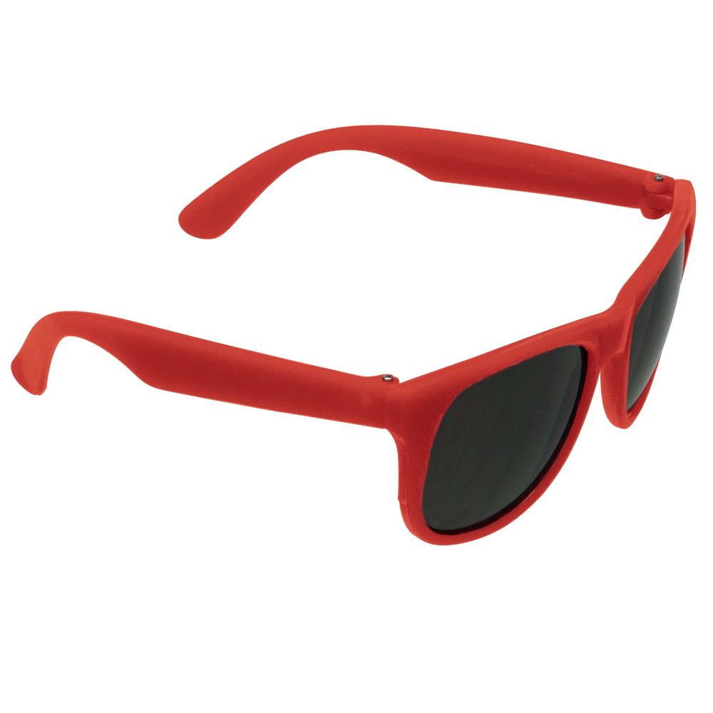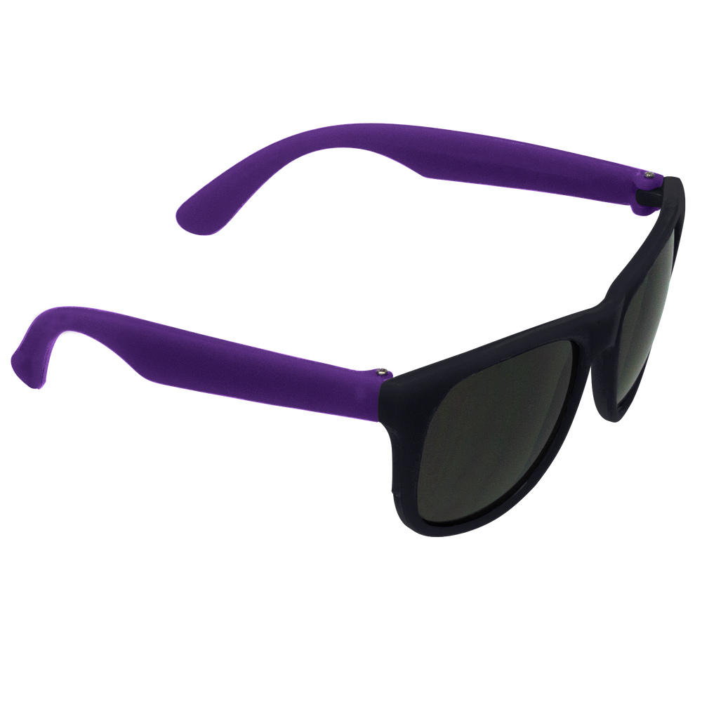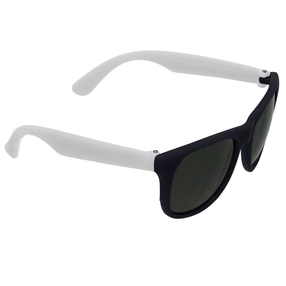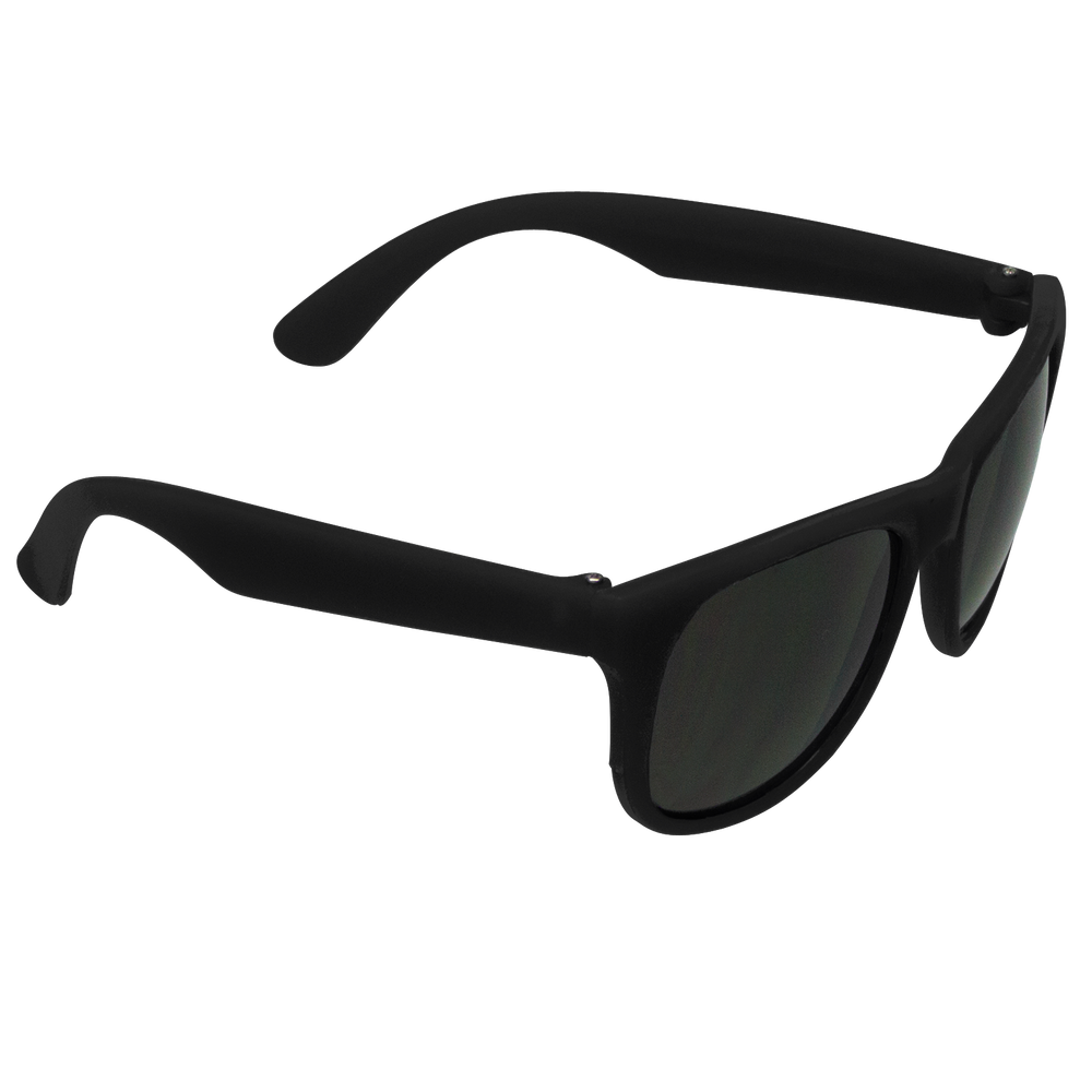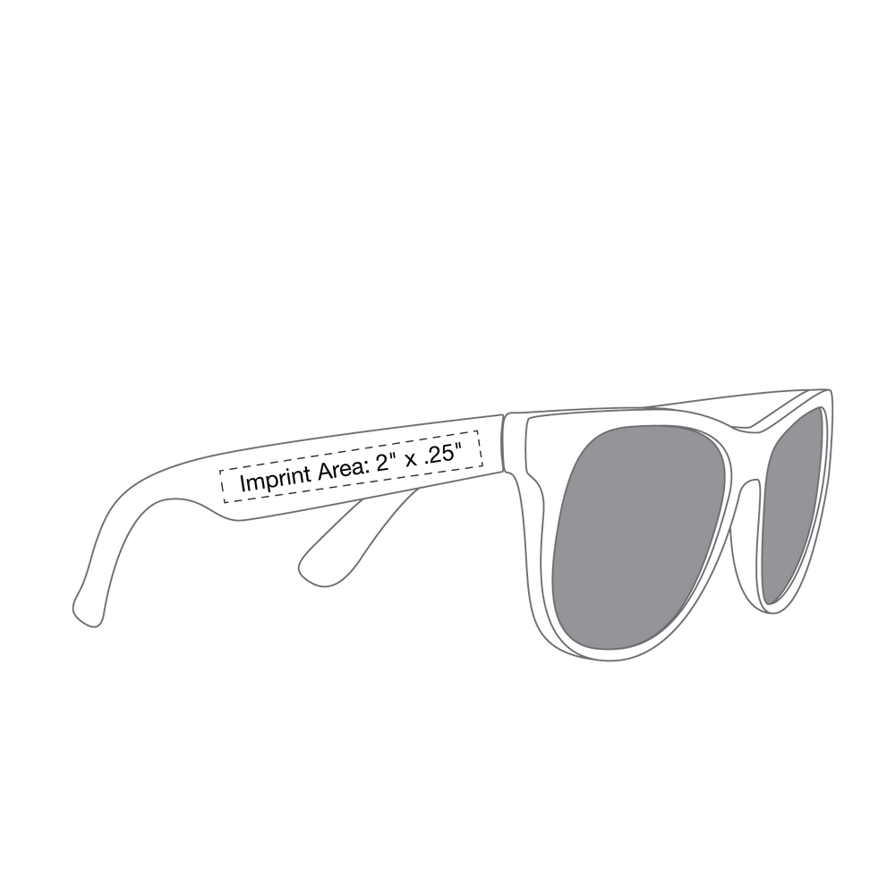 Classic streamlined style with cool-as-night dark-black lenses, these bottom-line shades in a distinctive square shape give you a polished vibe to go with any outfit. These custom sunglasses are a powerful 80s throw back in sturdy recycled plastic with a contemporary rubberized texture and guaranteed UV 400 sun protection lenses, these are the perfect classy accessory go-to! Right at home at any barbecue, ultimate Frisbee game or outdoor event, these are the sure to be coveted swag item of the season, getting your message across loud and clear with the large 2” x .25” imprint area on the right stem.