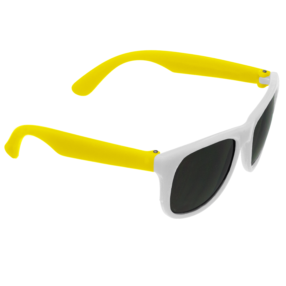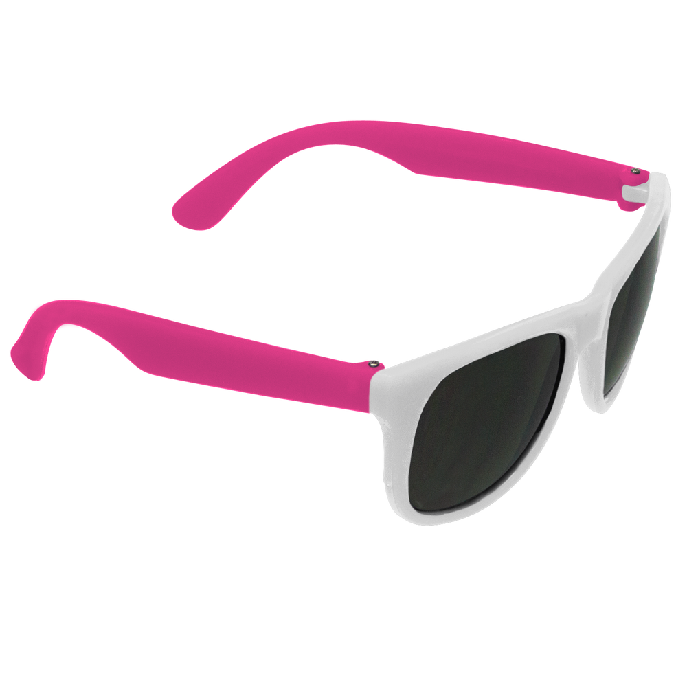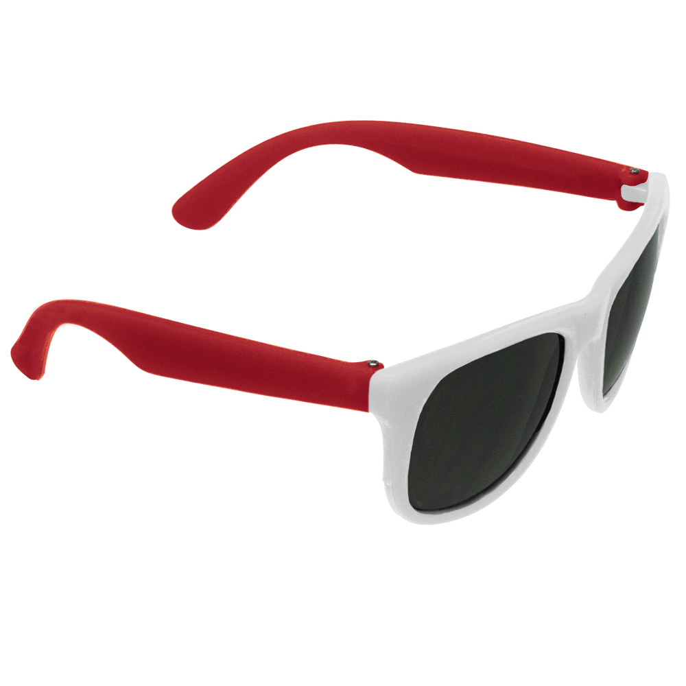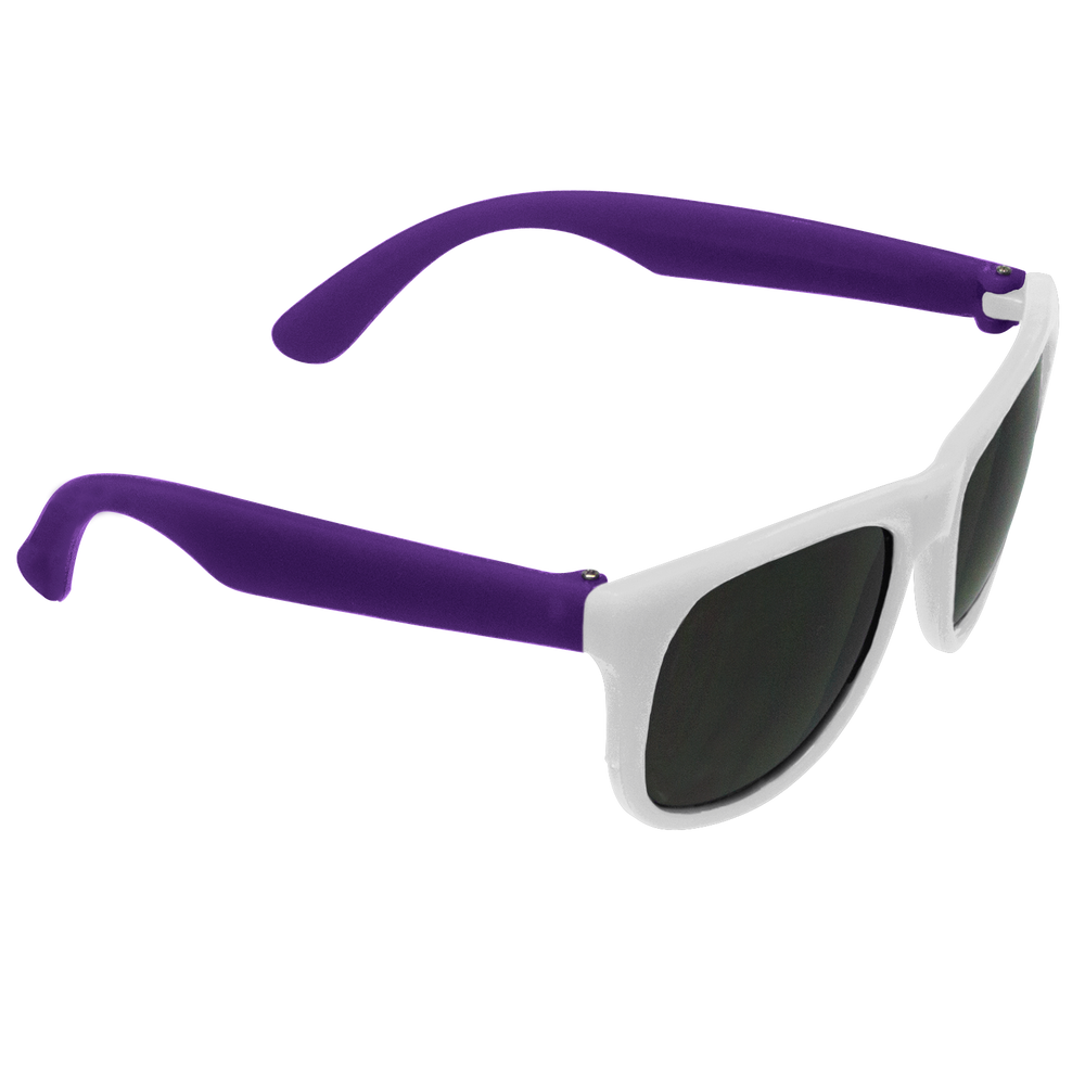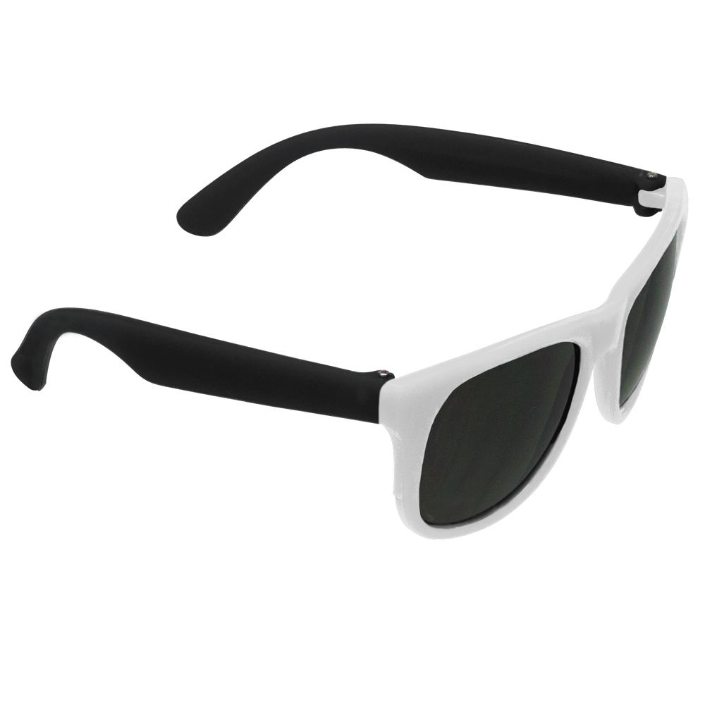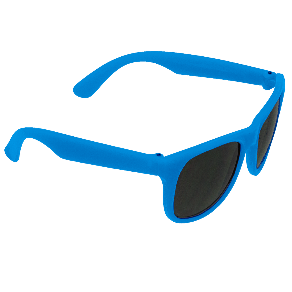 Classic streamlined style with cool-as-night dark-black lenses, these bottom-line shades in a distinctive square shape give you a polished vibe to go with any outfit. These custom sunglasses are a powerful 80s throw back in sturdy recycled plastic with a contemporary rubberized texture and guaranteed UV 400 sun protection lenses, these are the perfect classy accessory go-to! Right at home at any barbecue, ultimate Frisbee game or outdoor event, these are the sure to be coveted swag item of the season, getting your message across loud and clear with the large 2” x .25” imprint area on the right stem.